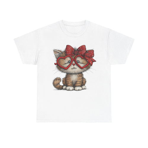 Cute Kitten with Heart Glasses Tee