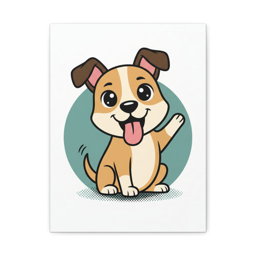 Cute Waving Puppy Stretched Canvas Print — Matte Wall Art